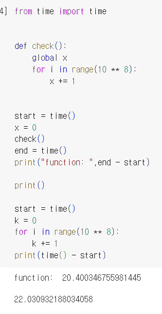 실제로 함수 내부에 global 변수를 사용하면 속도 차이가 없어진다