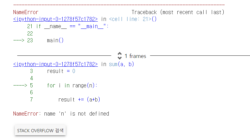 다음과 같이 sum()함수에서 n을 찾지 못하기 때문이다