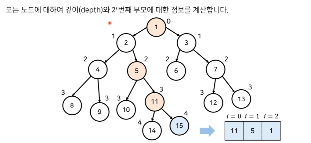#j >> parent[j][i] >> parent[parent[j][i-1]][i-1]로 유도된 부모 관계 점화식