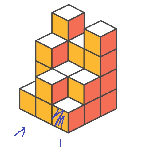 예를 들어 왼쪽에서 볼때, 3행에 4개가 보인다는 것을 어떻게 아는가?