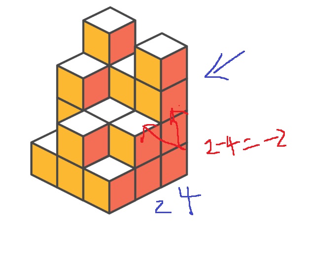 2열로 가는데 2개가 있다는데, 처음에 4개 보이니까 2-4 = -2개가 보인다?