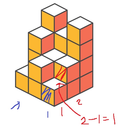 그러면 왼쪽에서 볼때 총 겉면적의 수는, 고정된 행 n에 대하여, 0부터 m-1까지 순회해서 인접한 원소끼리의 차이를 더해가면 되는게 아닐까?