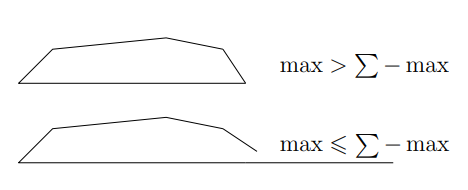 나머지 변들의 길이를 하나씩 붙여서 일직선으로 만들때, 가장 긴변의 길이보다 커야 위의 도형이 나오고
