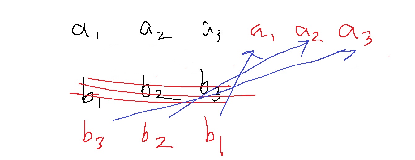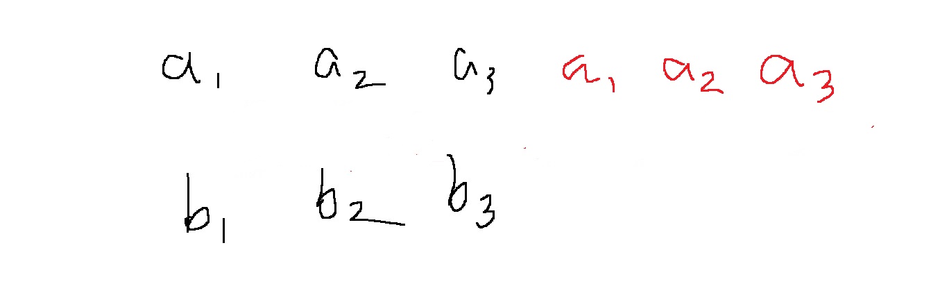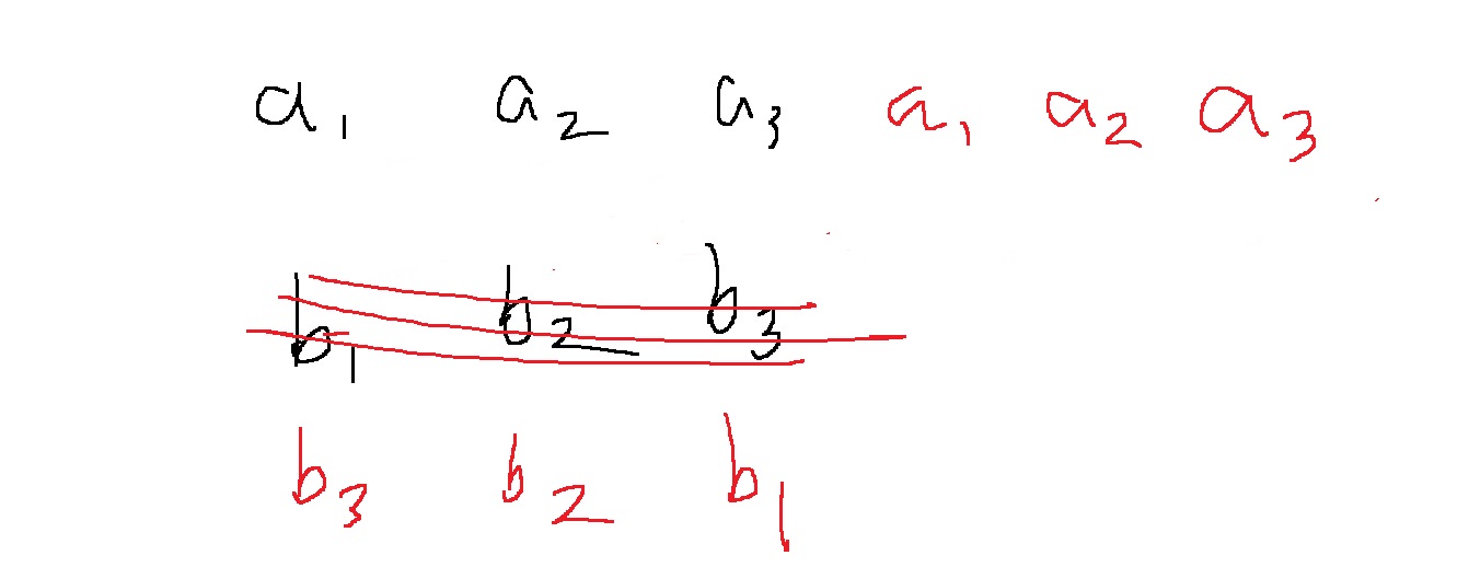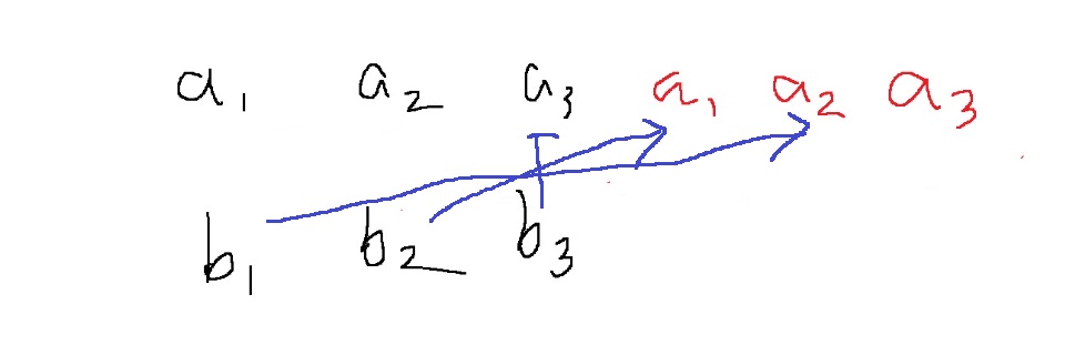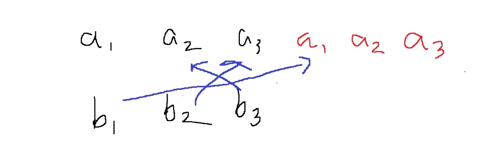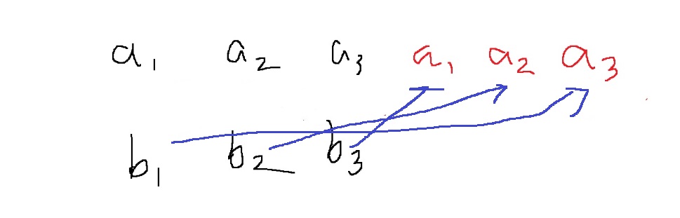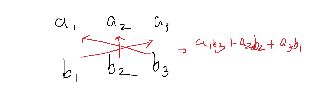 $$c_{i} = \sum_{j=0}^{i}a_{j}b_{i-j} = a_{0}b_{i} + a_{1}b_{i-1} + ... + a_{i}b_{0}$$