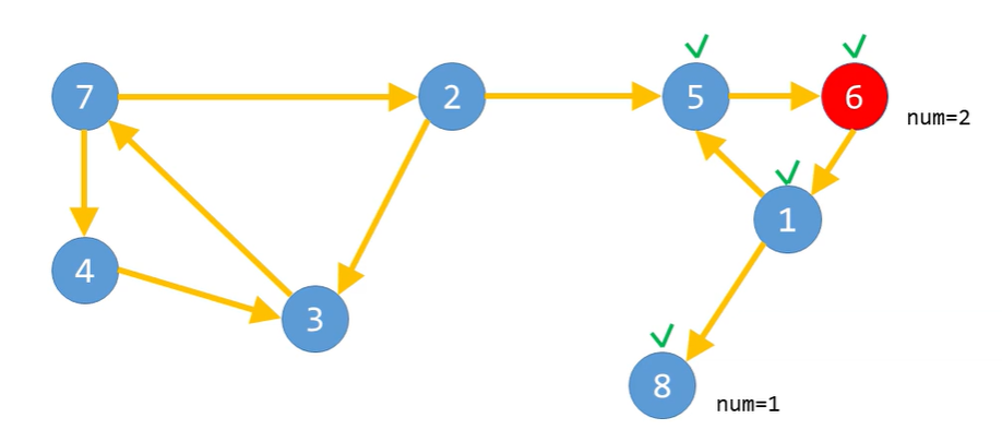마지막으로 방문한 정점에 num값을 기록하므로 다음과 같은 단순한 경로에서는 어떠한 정점에서 시작하더라도