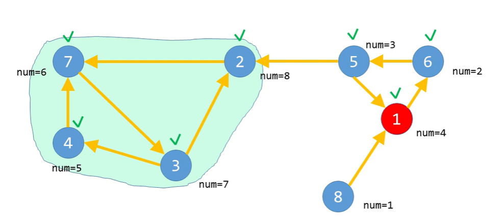 왜냐하면 애초에 num값이 큰 순서대로 정점을 선택하여 DFS를 수행했기 때문에, 아직 방문하지 않은 정점은..