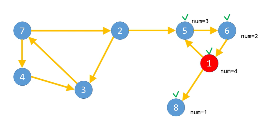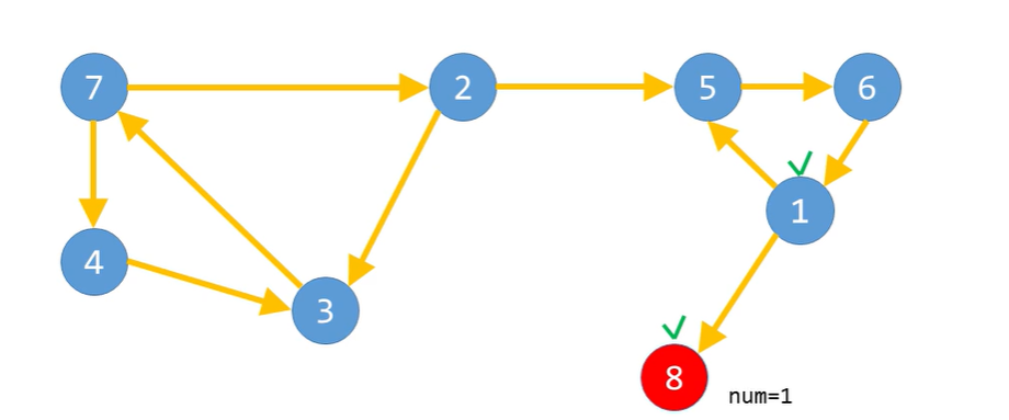 마지막으로 방문한 정점에 num값을 기록하므로 다음과 같은 단순한 경로에서는 어떠한 정점에서 시작하더라도