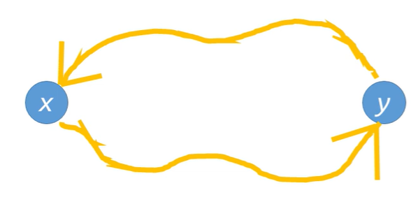 방향그래프에서 임의의 정점 v1,v2를 골랐을때, 항상 v1과 v2를 서로 오갈 수 있는 경로가 존재한다면,