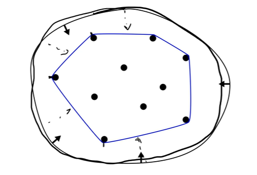 직관적으로는 무한한 크기의 고무줄(검은색)을 주어진 모든 점을 둘러싸도록 크게 당긴 다음,