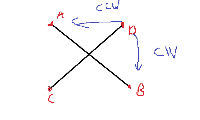 1) A,B,C의 CCW, 2) A,B,D의 CCW, 3) C,D,A의 CCW, 4) C,D,B의 CCW 4개를 구해야한다